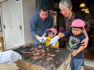 アルバム 焼肉パーティおいしかったね! 2025/10/08 運動会で頑張ったご褒美に、那珂川の別院(通称 お山)にバスで行き、おいしいおいしい焼肉を炭火で焼いて、焼肉パーティを楽しみました。おいしいお山の空気と最高の景色、炭火で自分たちでも焼いたおいしいお肉や野菜を満喫しました!! << 一覧に戻る